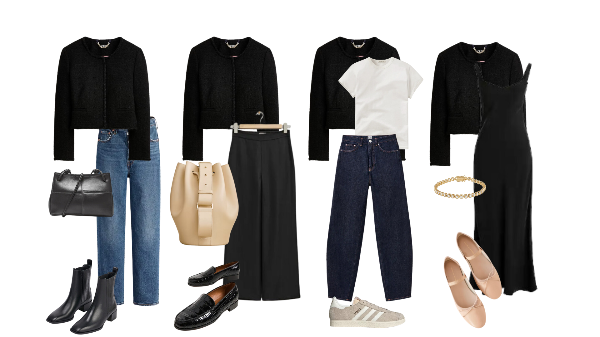 Look 3: Brunch? Breakfast plans? Work from home? I like the juxtaposition of the barrel-leg jeans which feel a little more masculine to me with the feminine jacket. I’m still on the fence about the barrel-leg look, but this full outfit is something I could see myself wearing!