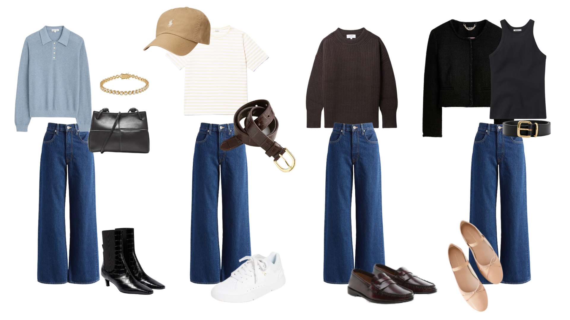 Let’s dive into it, starting with Wide Leg Jeans. As you can see, I’m highlighting dark wash jeans here - this feels like the most seasonally-appropriate way to dip into this trend. You could easily swap in a pair of black jeans, or even a baggier cuffed jeans (recently finding myself considering giving these a try!)