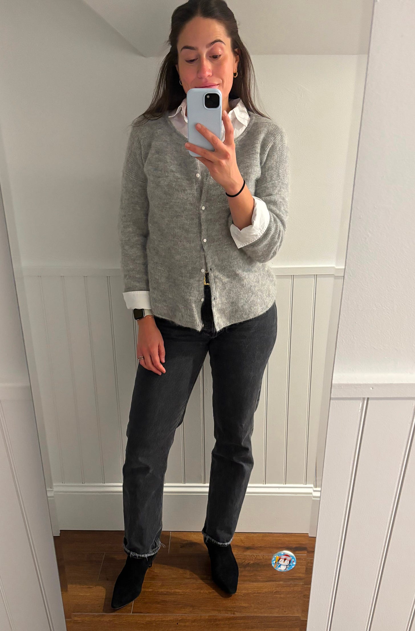 A grey + Black combo never fails me (also known as, I am addicted to these jeans!). Worn For: My first time serving Jury Duty! I was eventually dismissed from a criminal case but it made for an exciting morning! And then, since I found myself with a free afternoon, I took my butt to my tailor to get 3 pairs of pants that have been sitting in a “bring me to the tailor” bag in my car for approximately 6 months! Maybe this is your sign to do this too - because it literally took 15 minutes!